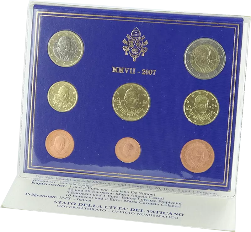 Mintage : 85.000 ex. Incluing 8 coins 1 cent to 2 euros with the portrait of the Pope Benoit XVI.