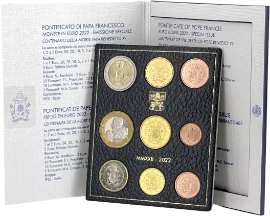 Contient 8 pièces de la 1 cent à la 2 euros au millésime 2022 Armoiries Pape François et la pièce de 5 Euros 2022 Vatican