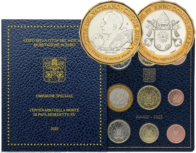 Coffret BU Euro incluant la 5 Euros 2022 VATICAN - 100 ans de la mort de Benoît XV