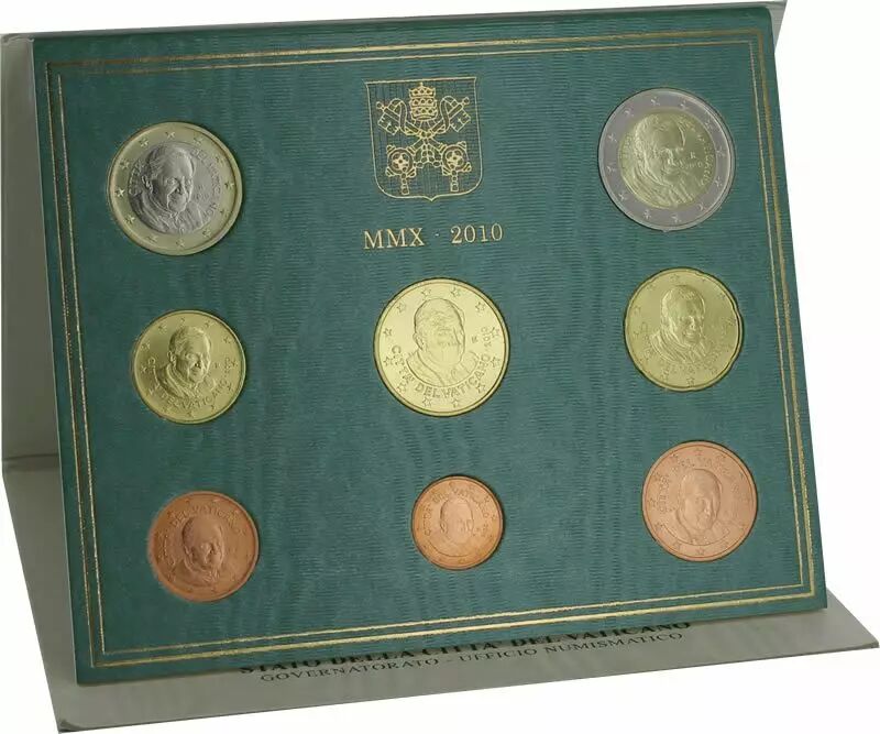 Contient 8 pièces de la 1 cent à la 2 euros au millésime 2010 à l'effigie du pape Benoît XVI.