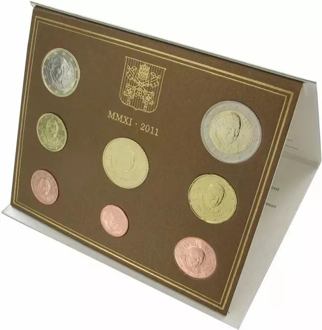 Contient 8 pièces de la 1 cent à la 2 euros au millésime 2011 à l'effigie du pape Benoît XVI.