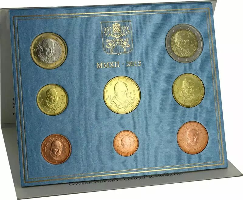 Contient 8 pièces de la 1 cent à la 2 euros au millésime 2012 à l'effigie de Benoît XVI.
