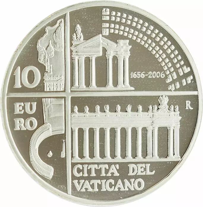 Pièce Vatican Colonnades Place Saint Pierre - Benoit XVI - 10 Euros Argent Vatican 2006