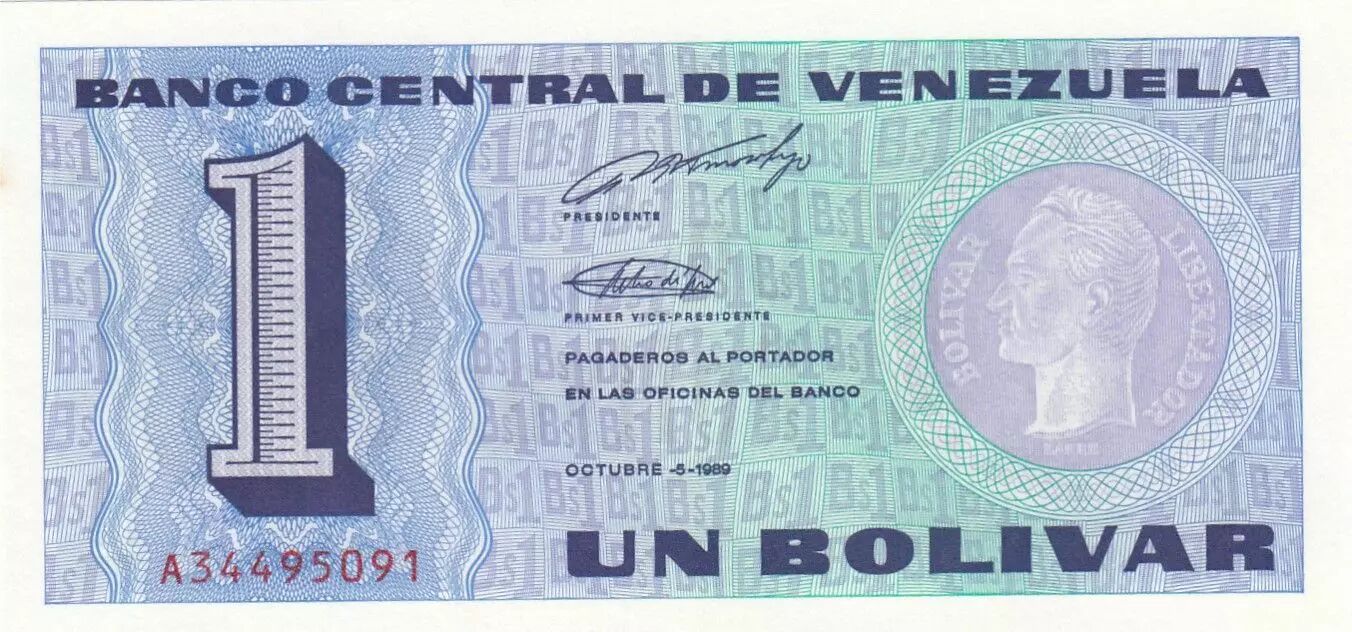Billet Venezuela 1 Bolivar, Simon Bolivar - Armoiries - 1989 - Série A