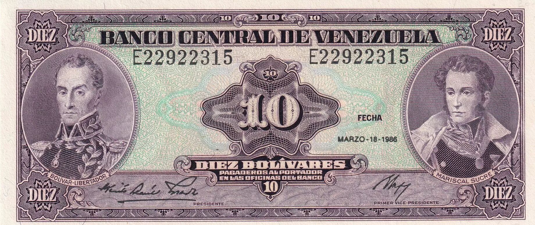 Banknote Venezuela 10 Bolivares - Bolivar & Sucre - 1986 - Serial E - P.61a