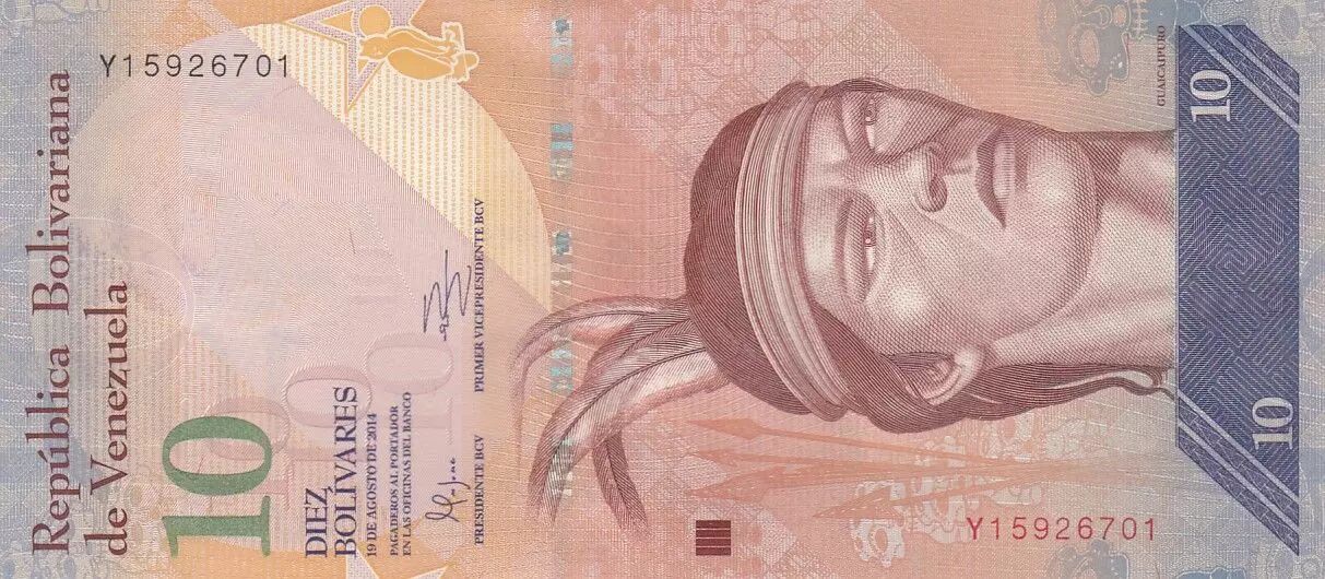 Billet Venezuela 10 Bolivares - Cacique Guaicapuro - Harpie - 19-08-2014 - Lettre Y
