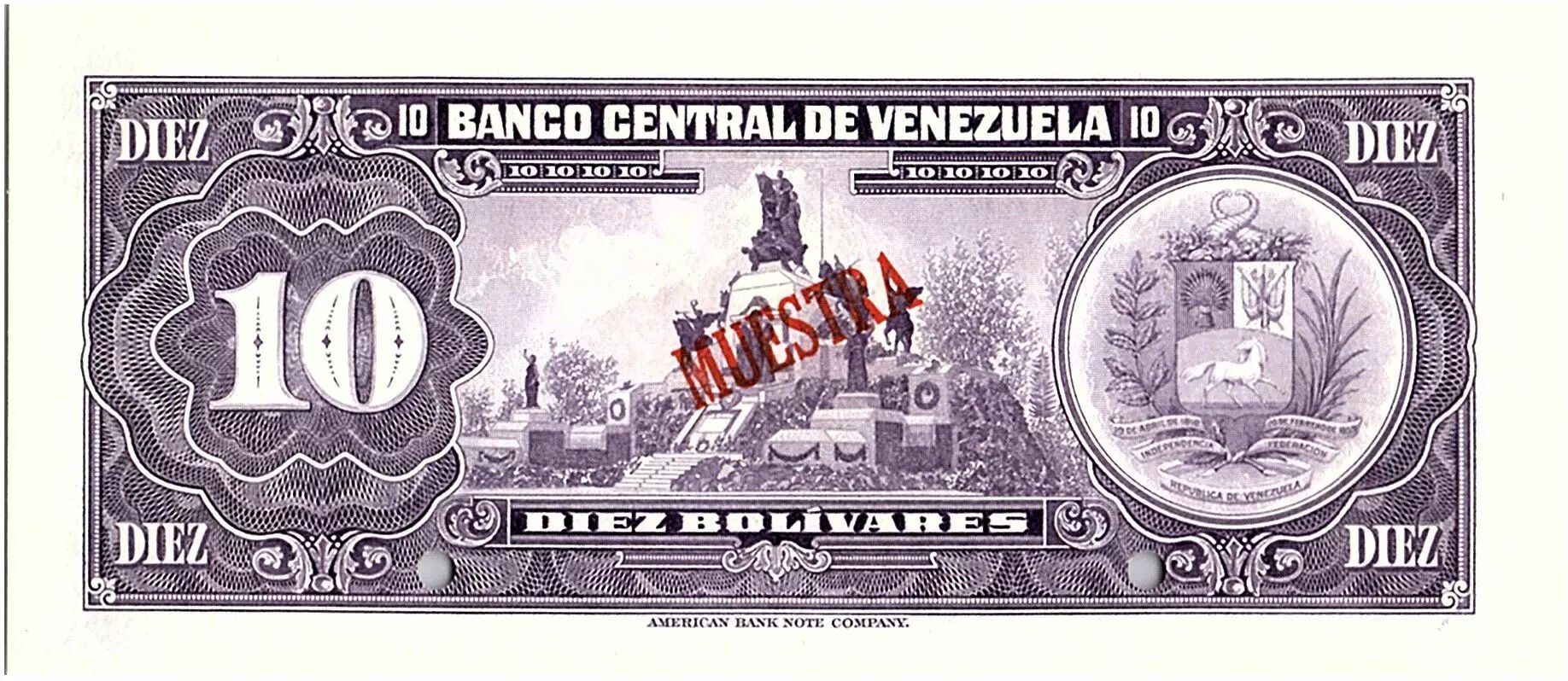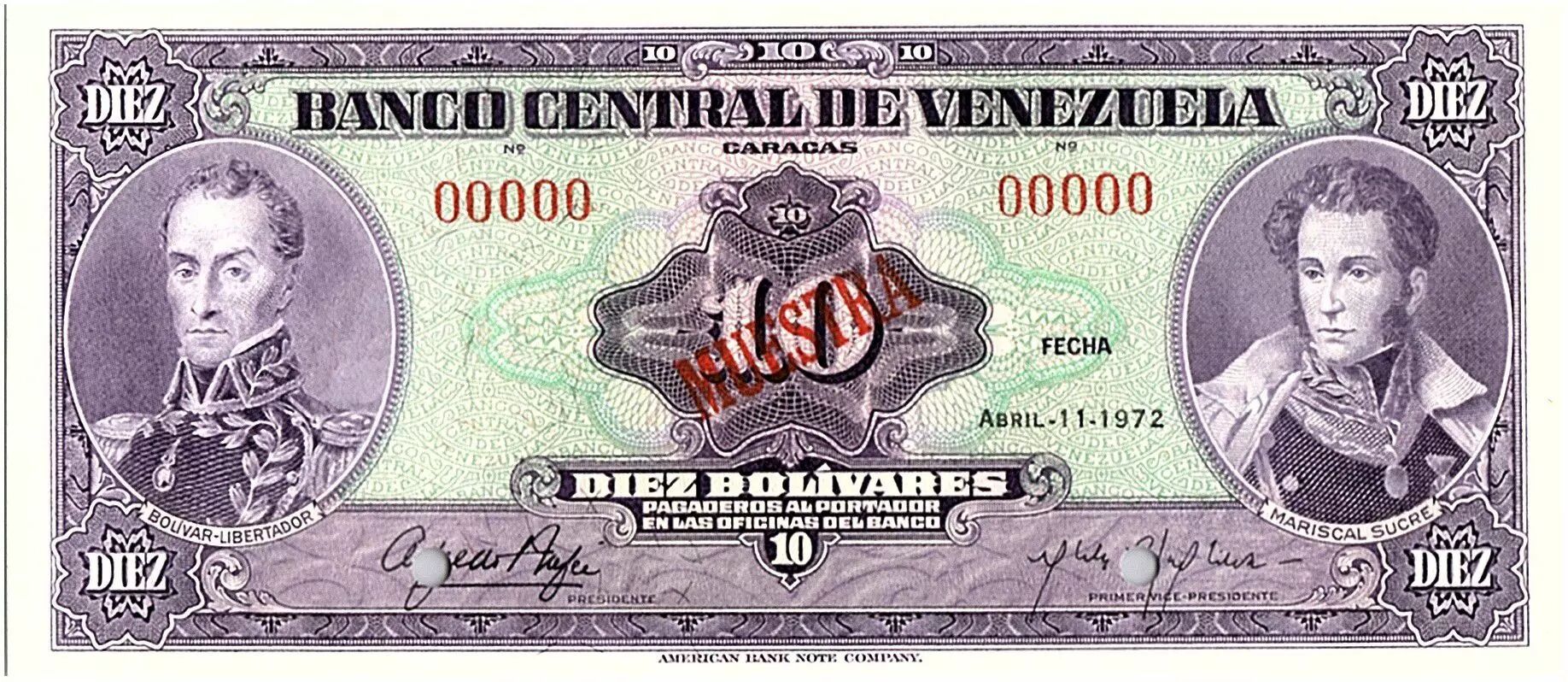 Home > World Banknotes > American Banknotes > Venezuela > Venezuela 10 Bolivares, Simon Bolivar - Antonio Jose de Sucre - 1972 - Muestra