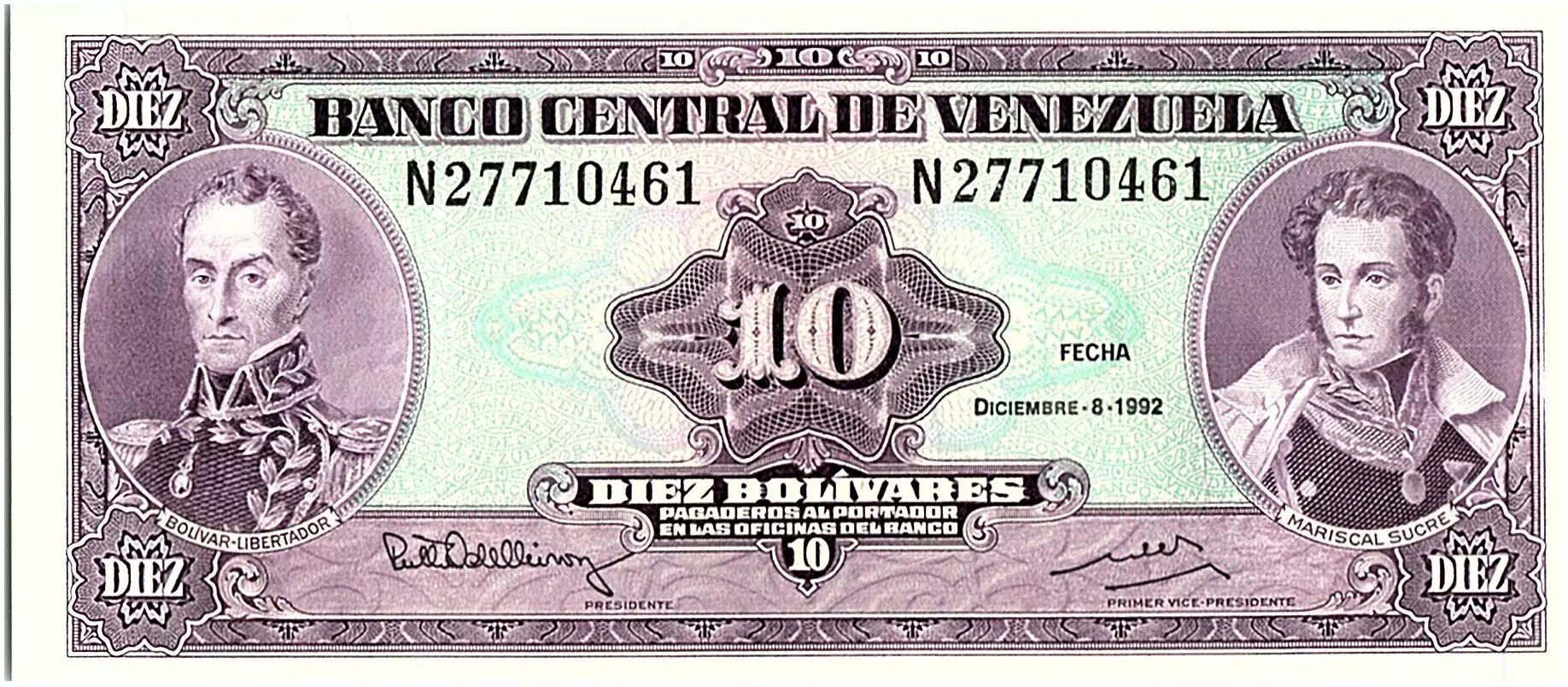 Banknote Venezuela 10 Bolivares, Simon Bolivar - Antonio Jose de Sucre - 1992