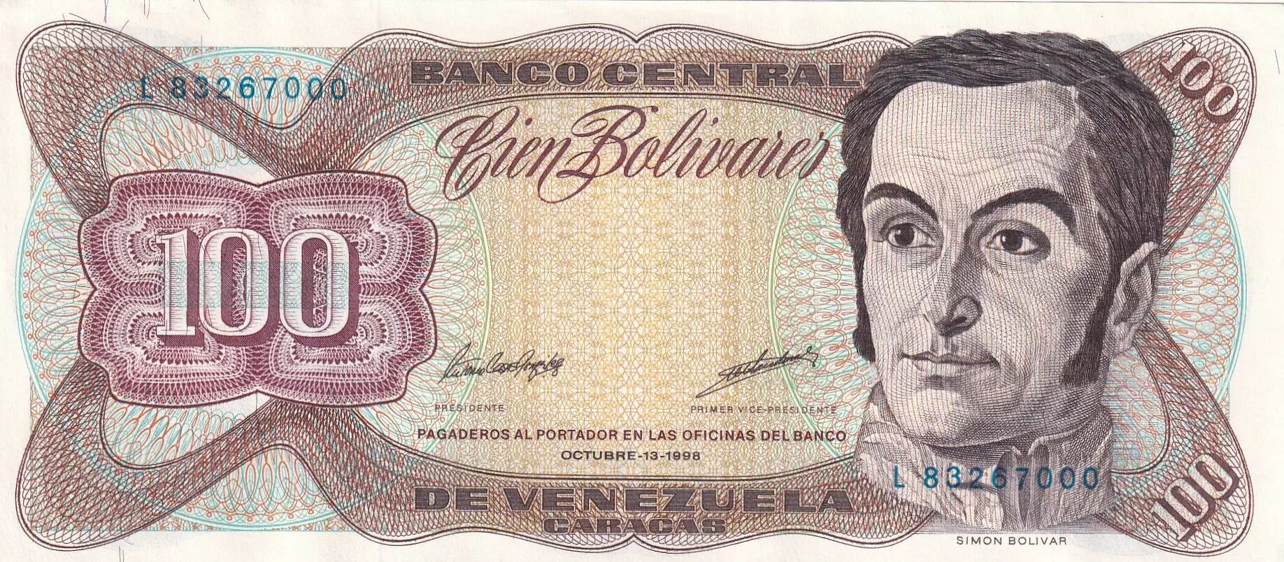 Banknote Venezuela 100 Bolivares Simon Bolivar - 1998 - Letter L
