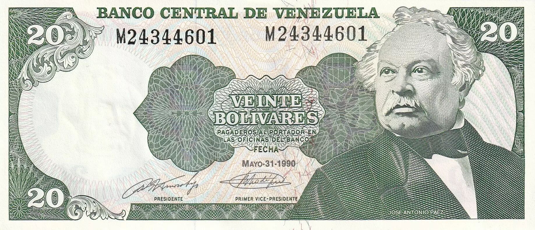 Home > World Banknotes > American Banknotes > Venezuela > Venezuela 20 Bolivares - Andres Bello - 31-05-1990 - Letter M