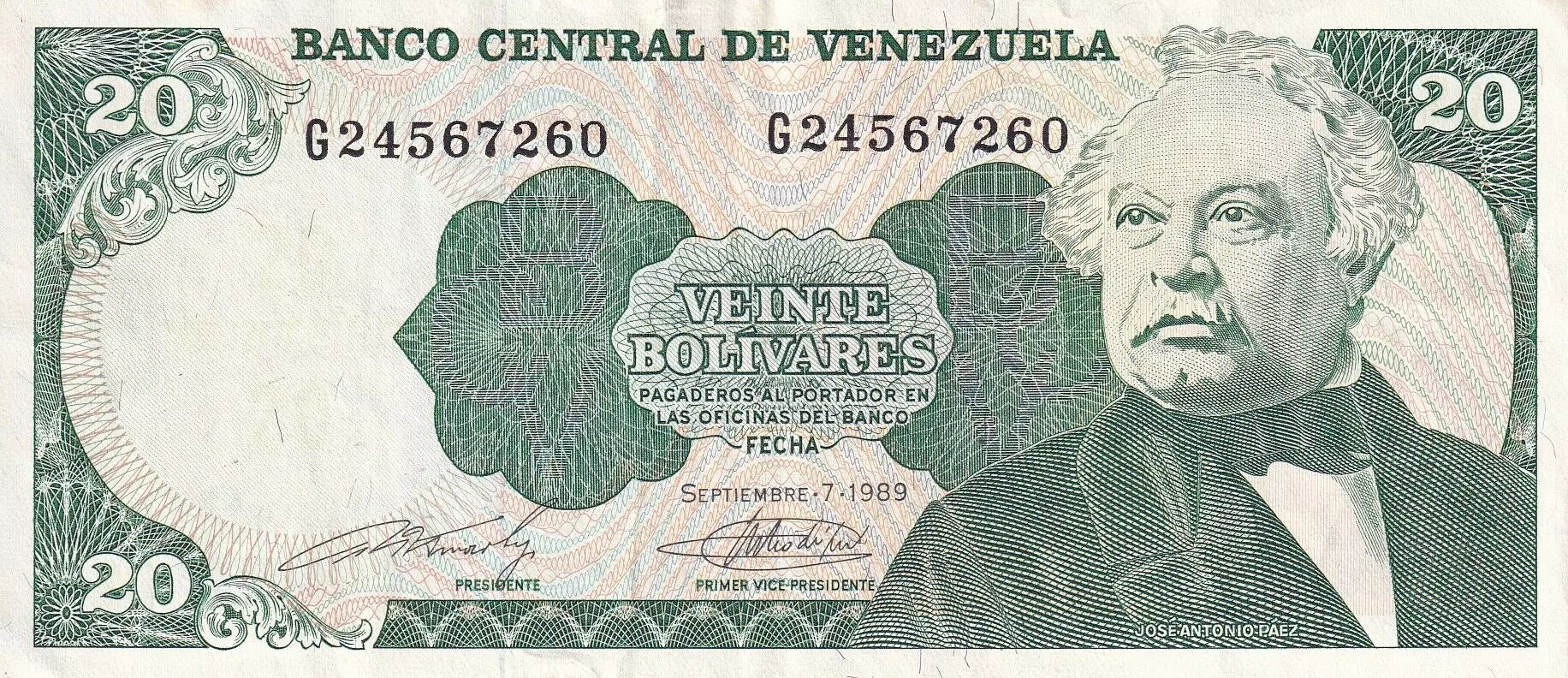 Banknote Venezuela 20 Bolivares - José Antonio Paez - 1981 - Serial G - P.64b