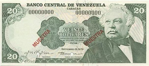 Billet Venezuela 20 Bolivares José Antonio Paez - Monument Bataille de Carabobo