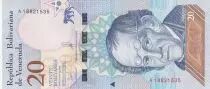 Banknote Venezuela 20 Bolivares Simon Rodriguez - Jaguar - 2018