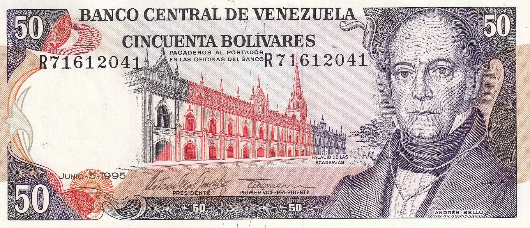 Accueil > Archivage > Venezuela 50 Bolivares - Andres Bello - 1995 - Série R - P.65d