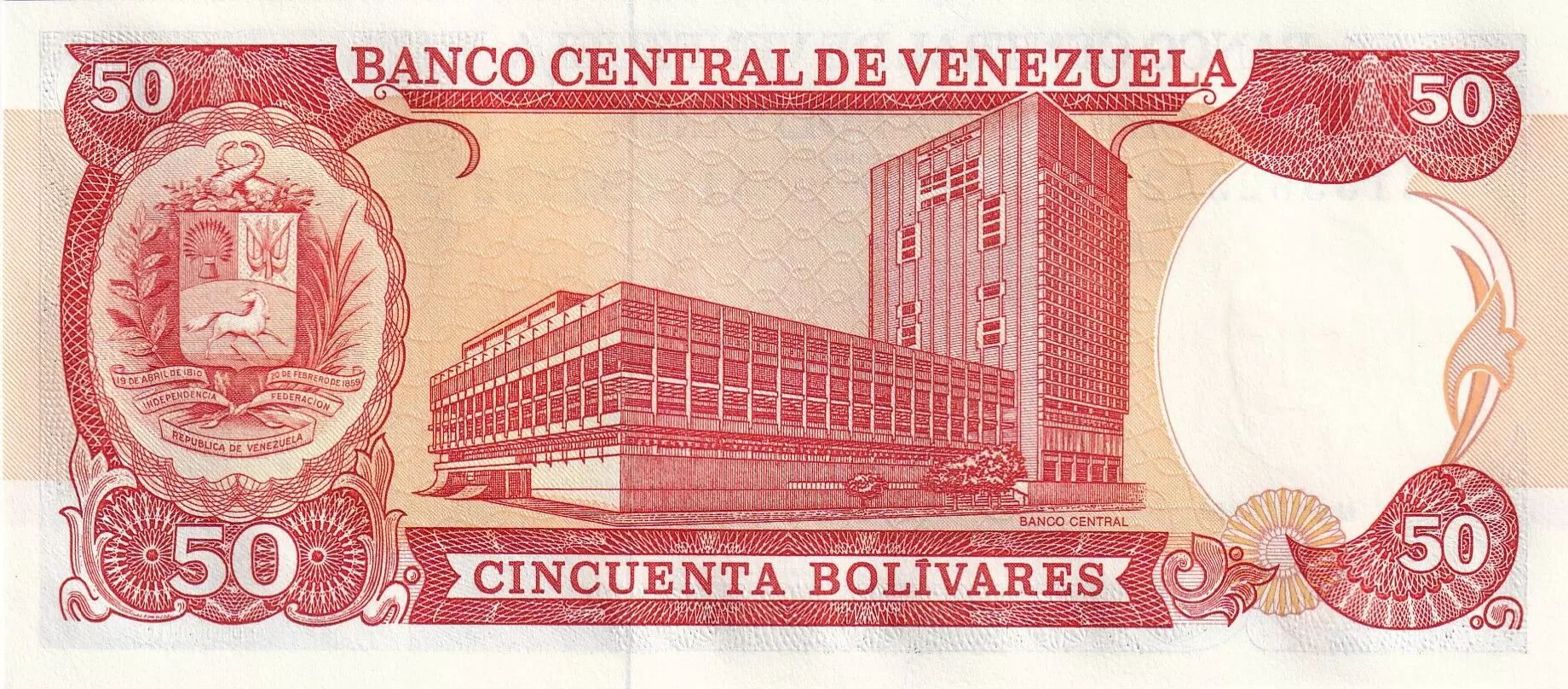 Banknote Venezuela 50 Bolivares, Andres Bello - Banque centrale- 1992