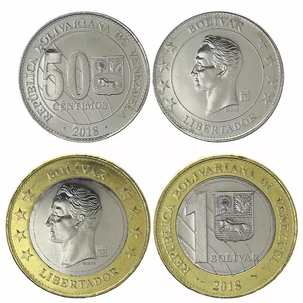 Contient les 2 nouvelles pièces de 2018 : 0.5 et 1 Bolivar 2018.