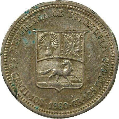 Pièce Venezuela Simon Bolivar - 25 Centimos Argent - 1960 Paris