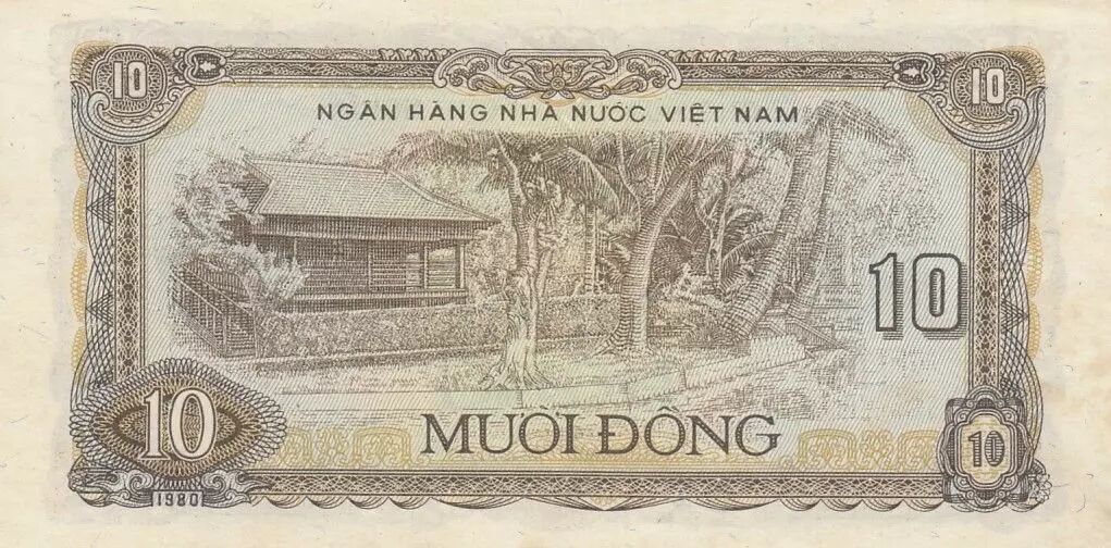 Banknote Viet Nam 10 Dong, Arms - House and trees - Serial DS -1980 - P.86
