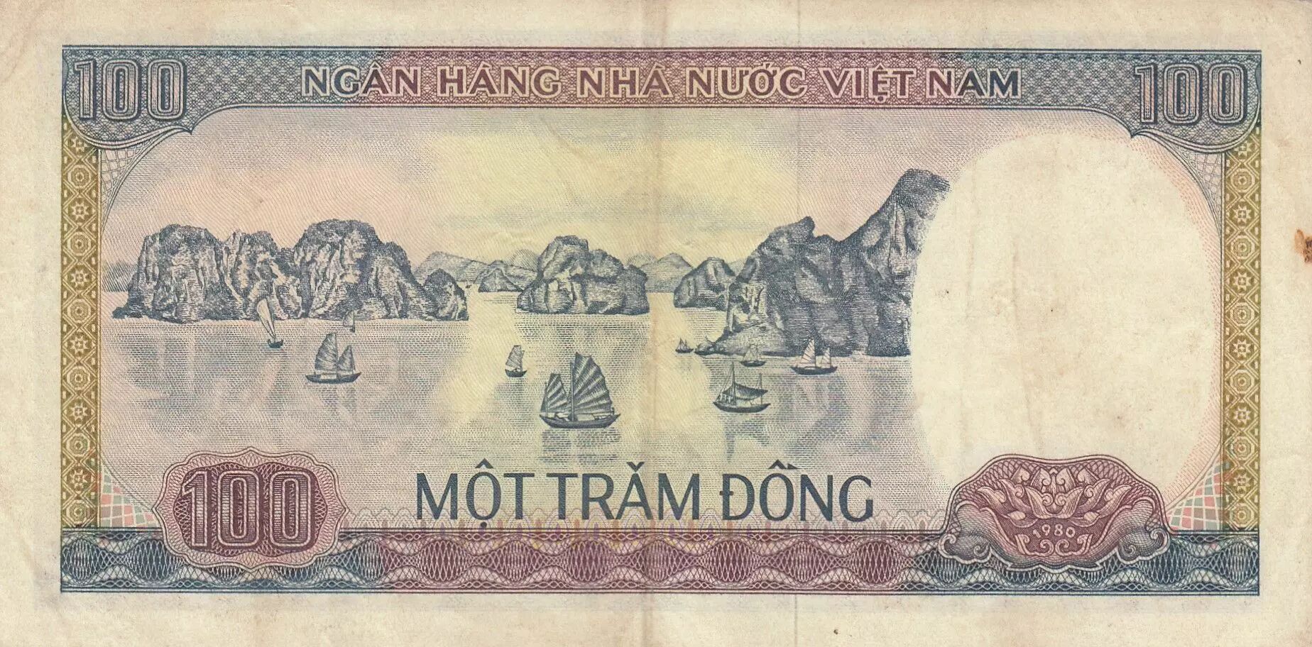 The 100 Vietnamese dong banknote, issued in 1980 and part of the TE series, has dimensions of 158 millimeters in length and 79 millimeters in width. The face value of this banknote is 100 dong.