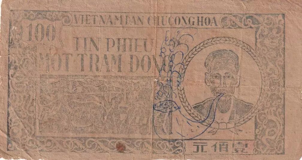 Banknote Viet Nam 100 Dong - Ho Chi Minh - ND (1950-1951) - Tin Phieu - P.54b