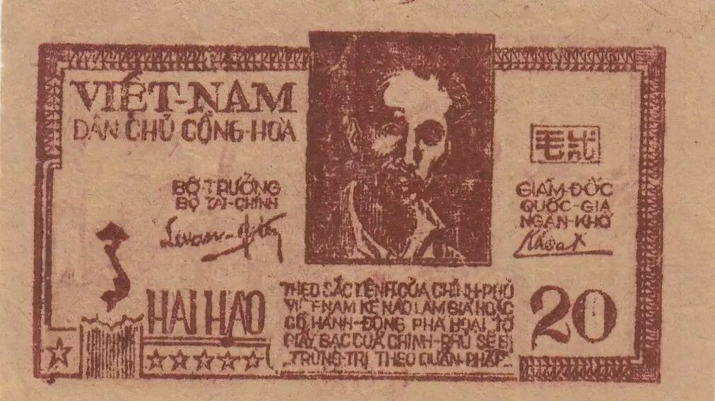 The 20 Xu banknote, issued in 1948, originates from Vietnam. The banknote is associated with the figure of the Minister of Finance. The issuing institution is not specified in the information provided.