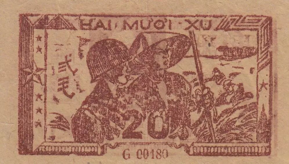 The 20 Xu banknote, dating from 1948, features a specific series identified by the letter "G" followed by the number "00 180". This information distinguishes this banknote from other issues of the same face value and year.