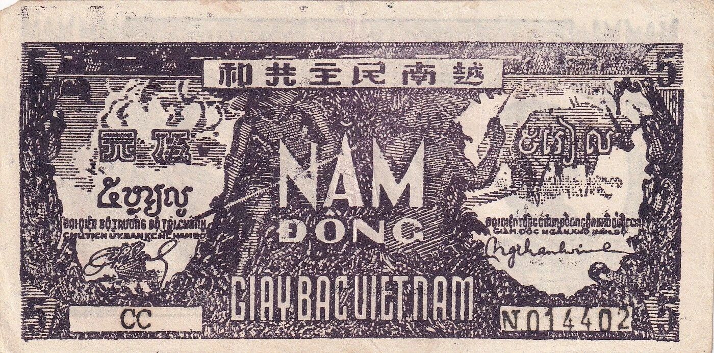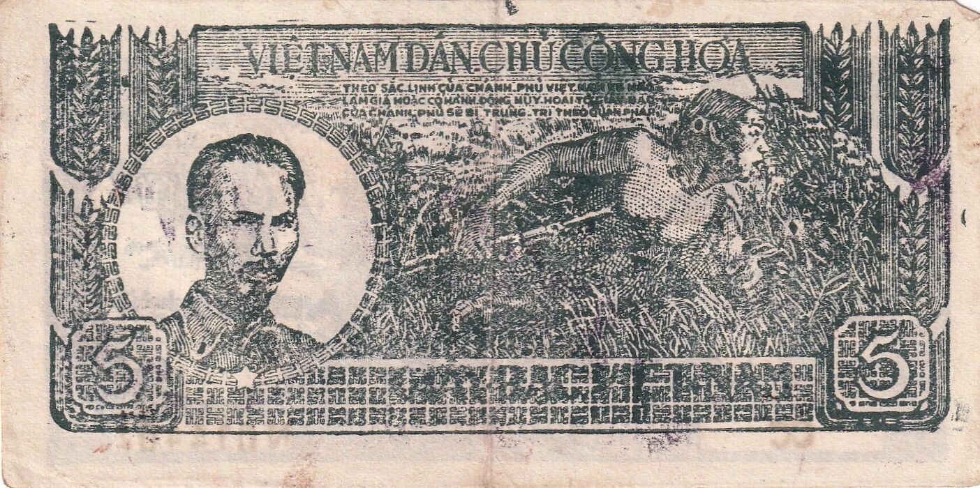 The 5 Dong banknote, issued in 1948, is part of the CC series and bears witness to a significant period in Vietnamese history. This banknote commemorates Ho Chi Minh, an emblematic figure of Vietnam, and traditional rural scenes.