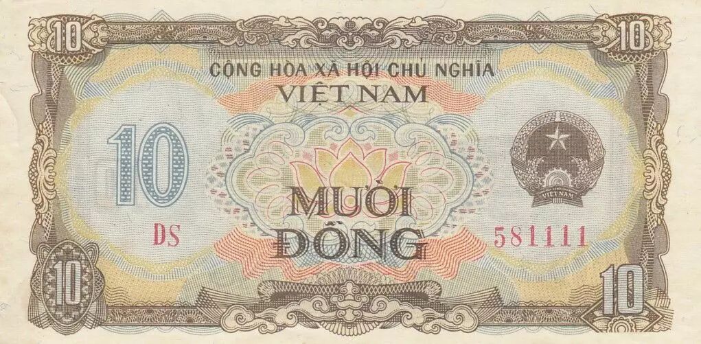 Accueil > Archivage > archivage-Billets du Monde > Vietnam 10 Dong, Armoiries - Maison et palmiers - Série DS - 1980 - P.86