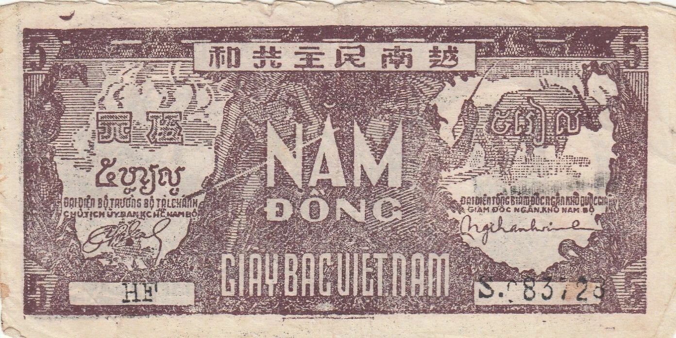 Ce billet de banque, d'une valeur nominale de 5 dongs, a été émis au Vietnam en 1948. Il s'inscrit dans la catégorie des billets de banque et témoigne d'une époque spécifique de l'histoire monétaire vietnamienne.