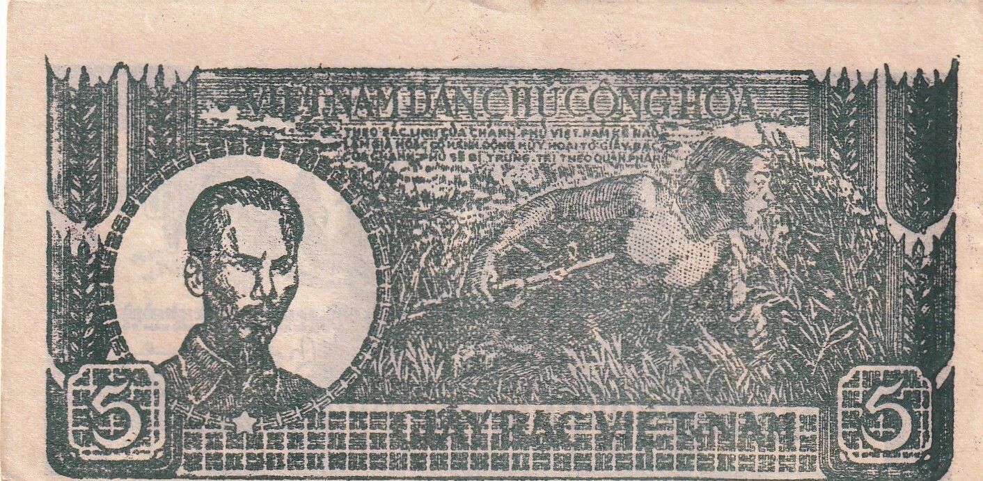 Le billet de 5 Dong, émis en 1948, s'inscrit dans la série HM et témoigne d'une période significative de l'histoire vietnamienne. Ce billet commémore Hô Chi Minh, figure emblématique du Vietnam, et des scènes rurales traditionnelles.