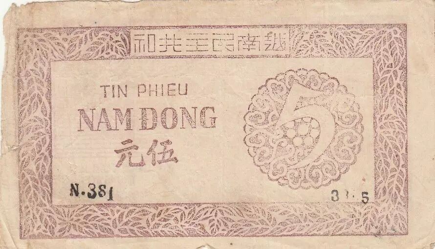 Accueil > Billets du Monde > Billets d'Asie > Vietnam > Vietnam 5 Dong - Ho Chi Minh - Série N.381 - 1949-1950 - P.46a
