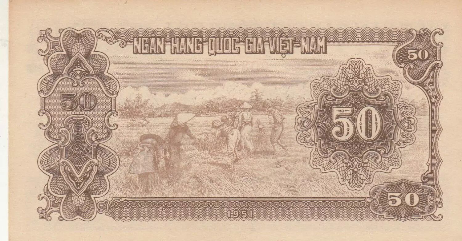 Ce billet de 50 Dong, de par son design et les éléments qu'il représente, offre un aperçu des valeurs et des priorités du Vietnam au milieu du 20e siècle. Il témoigne de l'importance de Hô Chi Minh, de la paysannerie et de l'identité nationale dans le contexte de l'époque.