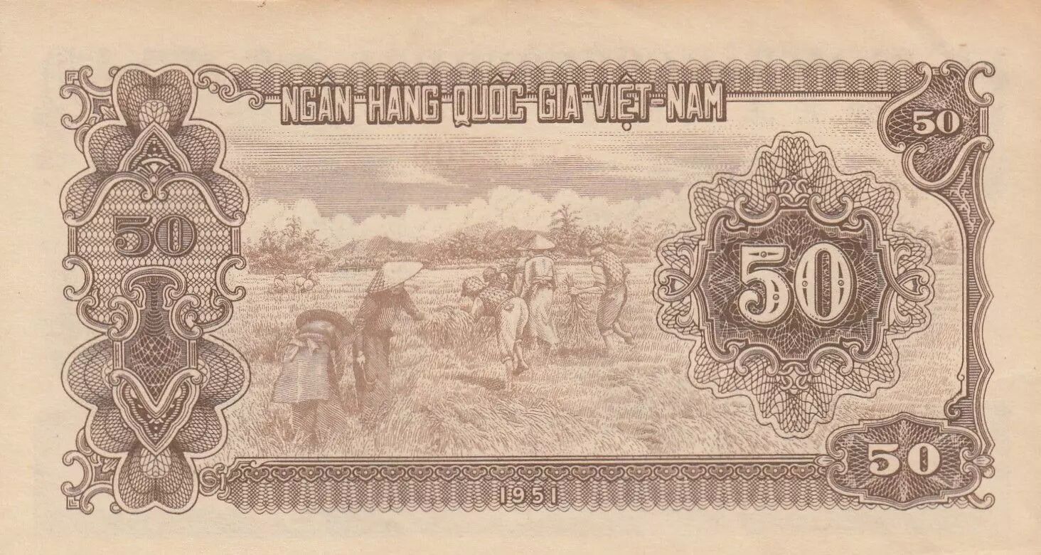 Ce billet de 50 Dong, de par son design et les éléments qu'il représente, offre un aperçu des valeurs et des priorités du Vietnam au milieu du 20e siècle. Il témoigne de l'importance de Hô Chi Minh, de la paysannerie et de l'identité nationale dans le contexte de l'époque.