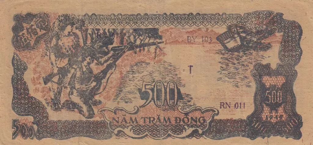 Billet Vietnam 500 Dong, Ho Chi Minh, soldats - 1949 Série RN.011-BY.103