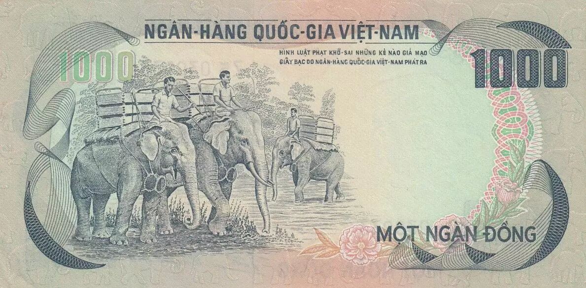 Billet Vietnam du Sud 1000 Dong, Palais de l'indépendance - Eléphants - 1972 - P.34