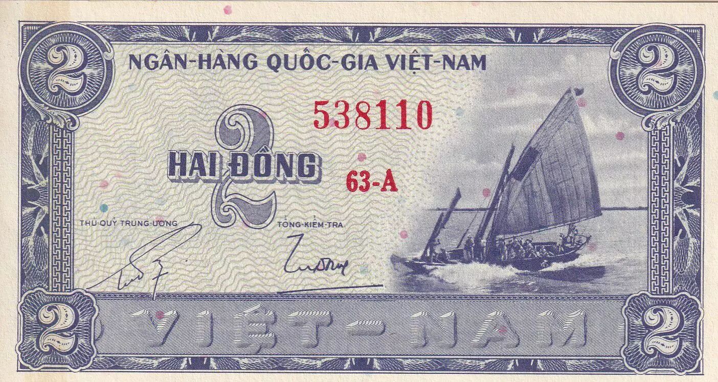 Billet Vietnam du Sud 2 Dong - Bateau - Palmiers - ND (1955) - Série 63-A - P.12a