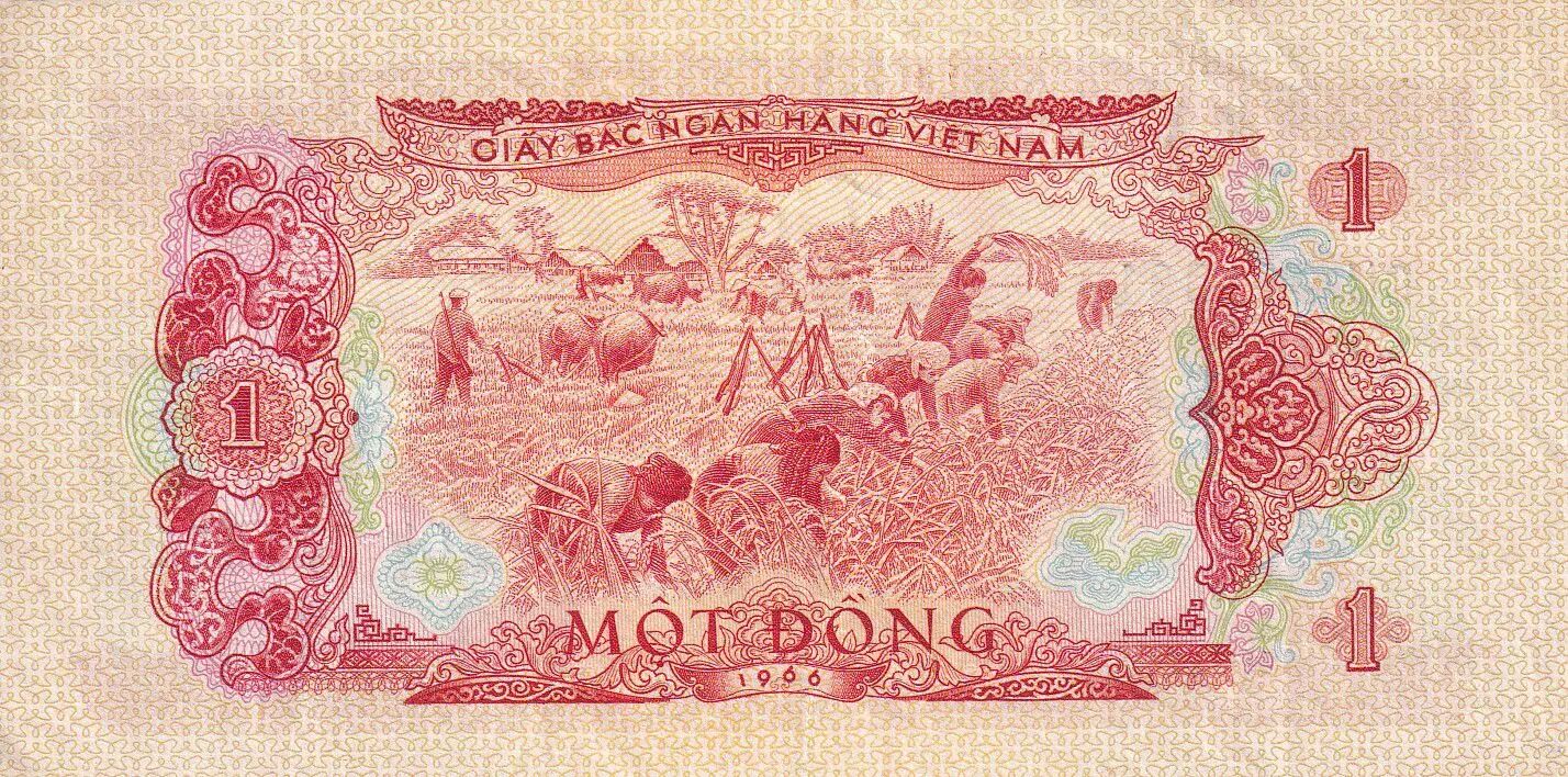 Banknote Vietnam South 1 Dong - Boat, palms - Agriculture - ND (1966) - Serial CU - P.40