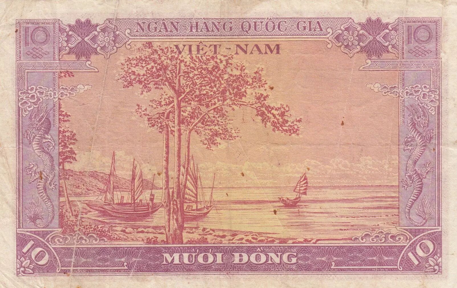 This 10 Dong banknote is a testament to the monetary history of South Vietnam, illustrating the motifs and symbols used at that time.