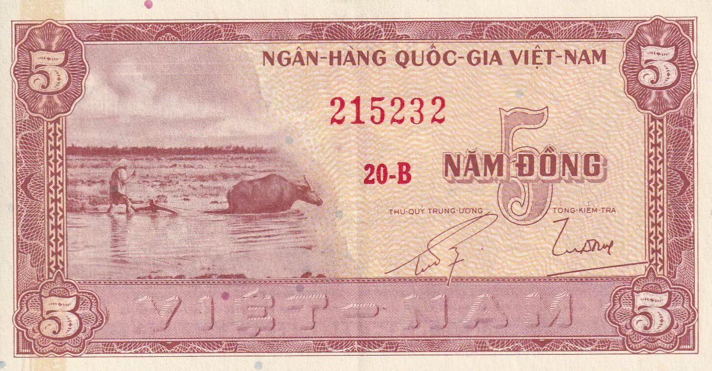 Home > > Vietnam South 5 Dong - Buffalo - House - ND (1955) - Serial 20-B - P.13a