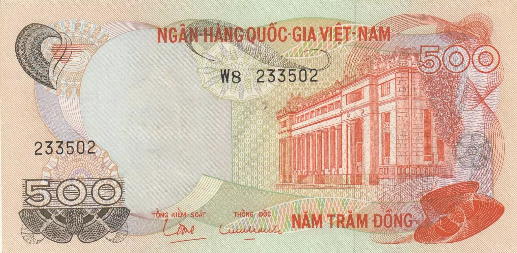 This 500 dong banknote testifies to the economic and historical context of South Vietnam in the 1970s. Its visual design, combining architectural elements, security features, and an iconic historical figure, makes it an object of interest for collectors and enthusiasts of monetary history.
