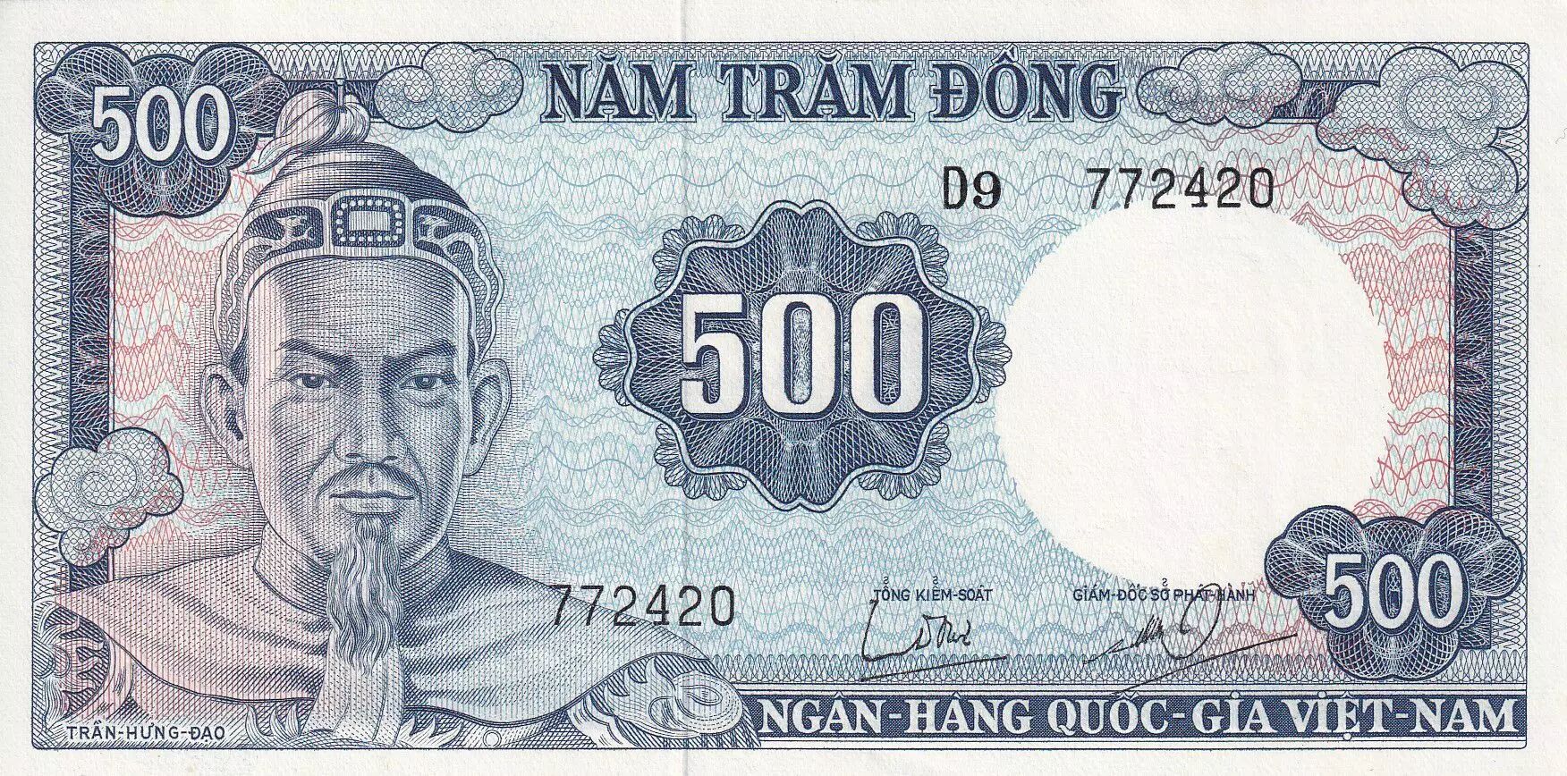 Banknote Vietnam South 500 Dong - Tran Hung Dao - Boat ND (1966) - Serial D.9 - P.23a