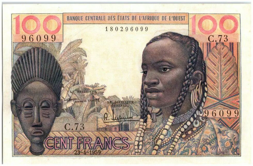 Home > World Banknotes > African Banknotes > West African States > West AFrican States 100 Francs Mask - 1959 - Serial C.73
