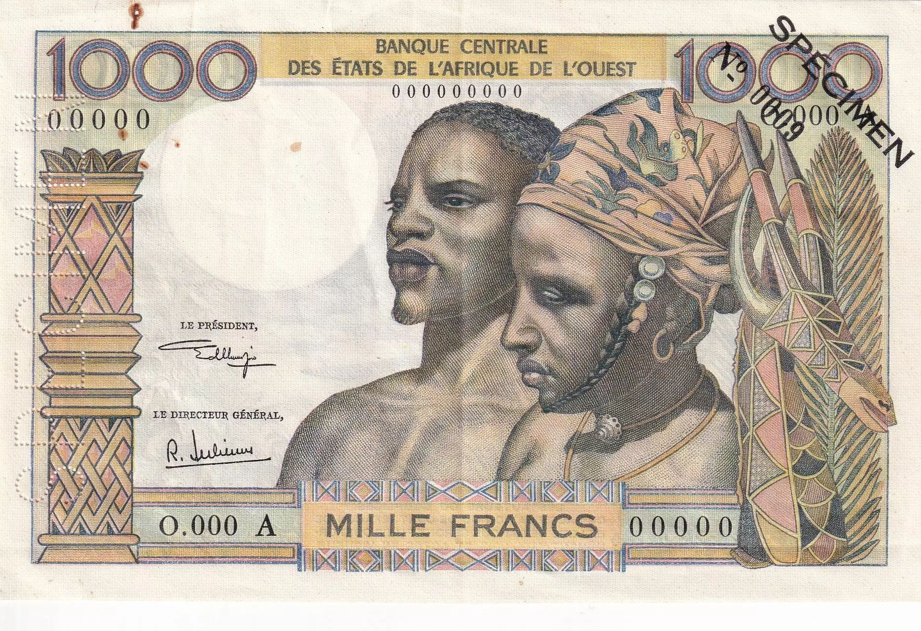 Home > > West AFrican States 1000 Francs, river ND (1961-) - Ivory Coast - Specimen