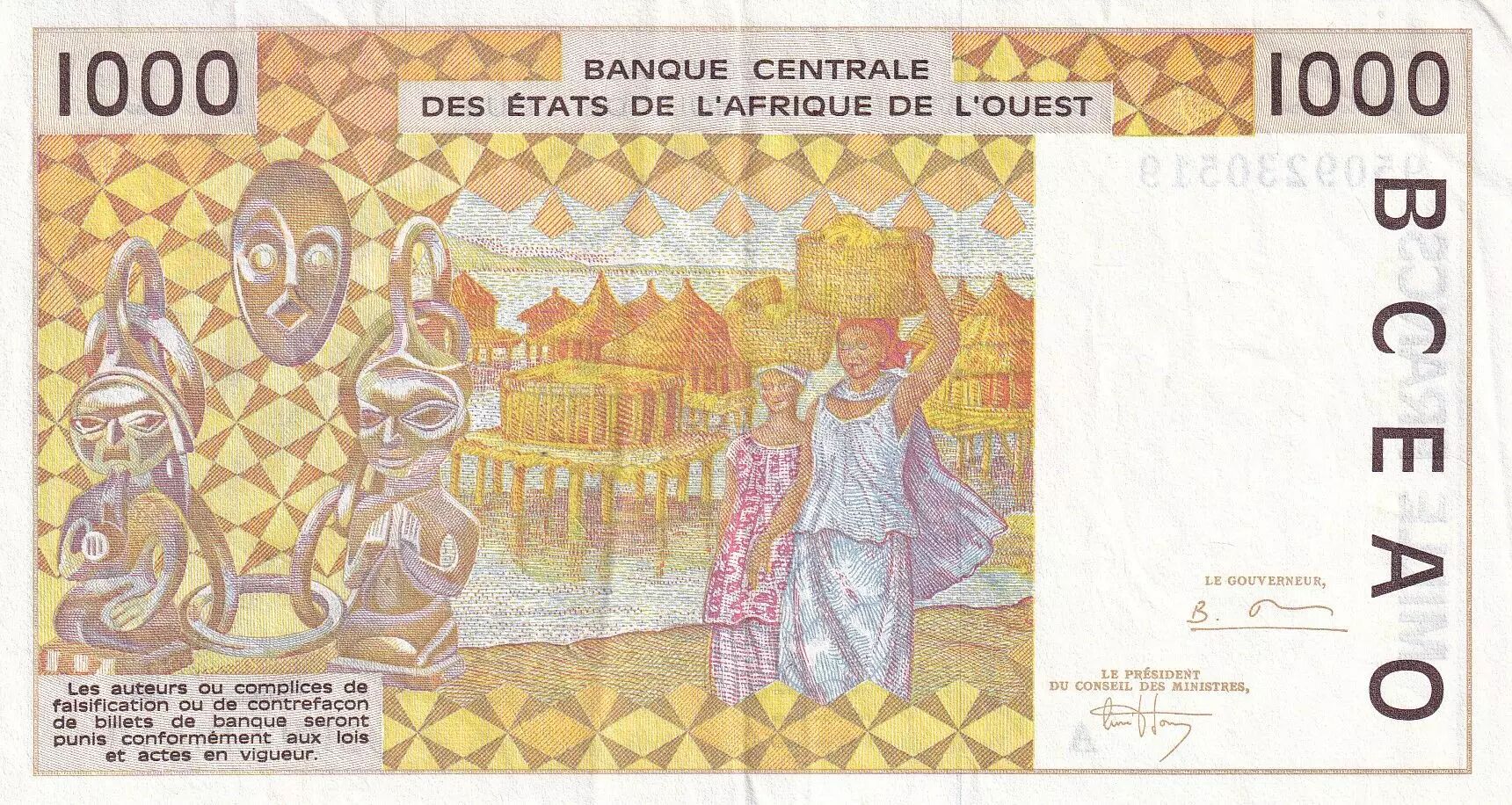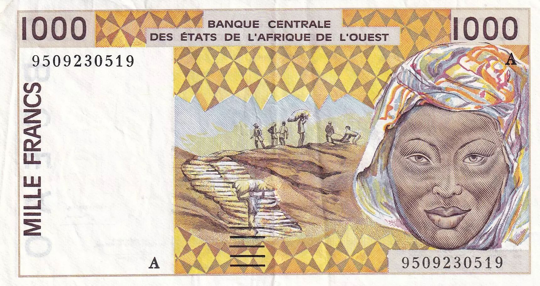 Home > > West AFrican States 1000 Francs - Woman - Letter A (Ivory Coast) - 1995 - P.111Ac