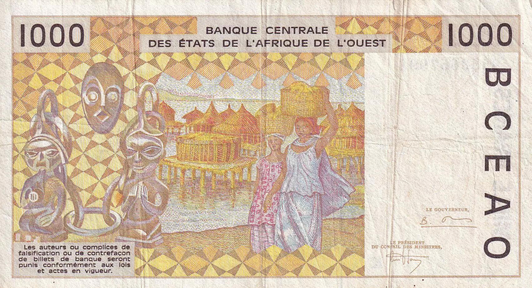 Home > > West AFrican States 1000 Francs - Workmen hauling peanuts - Mask - 1995 - Letter K (Senegal) - P.711K.e