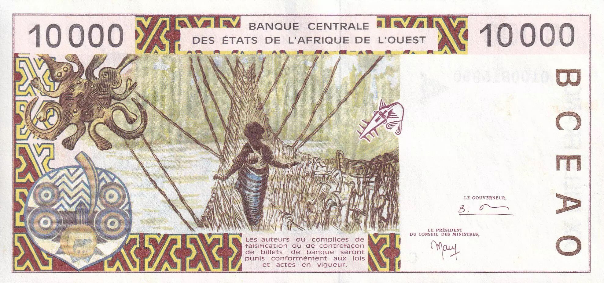 Home > World Banknotes > African Banknotes > West African States > West AFrican States 10000 Francs - Bridge - 2001 - Letter C (Burkina Faso) - P.314Cj