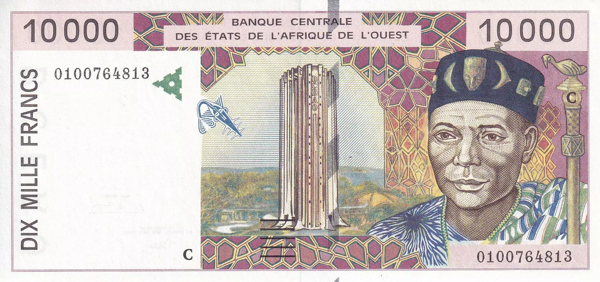 Home > > West AFrican States 10000 Francs - Bridge - 2001 - Letter C (Burkina Faso) - P.314Cj