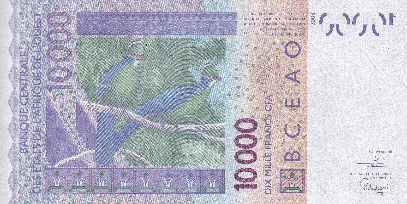 Home > World Banknotes > African Banknotes > West African States > West AFrican States 10000 Francs - Mask - Birds - 2019 - Letter A ( Ivory Coast) - P.New