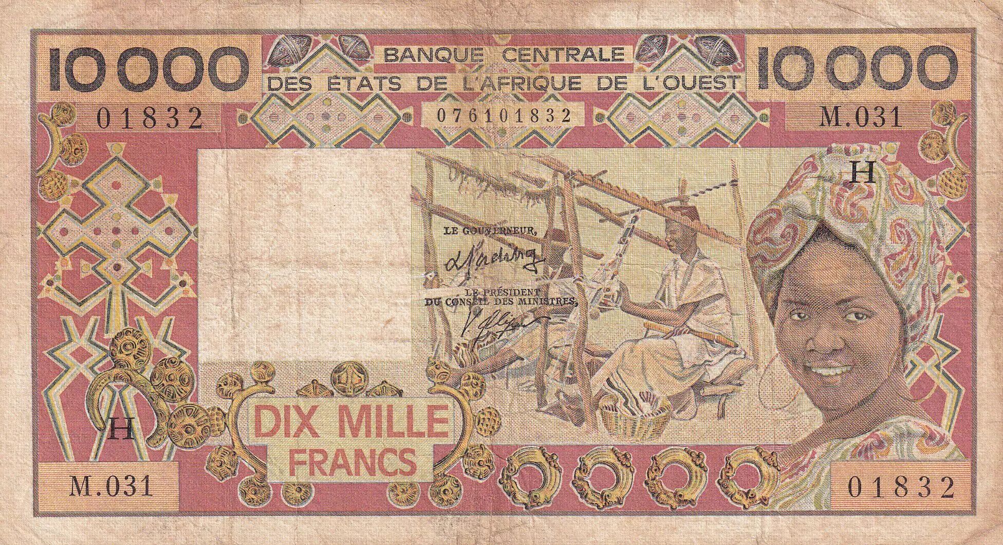 Home > > West AFrican States 10000 Francs - Spinning - ND (1977-1992) - Serial M.031 - Letter H (Niger) - P.609Hh