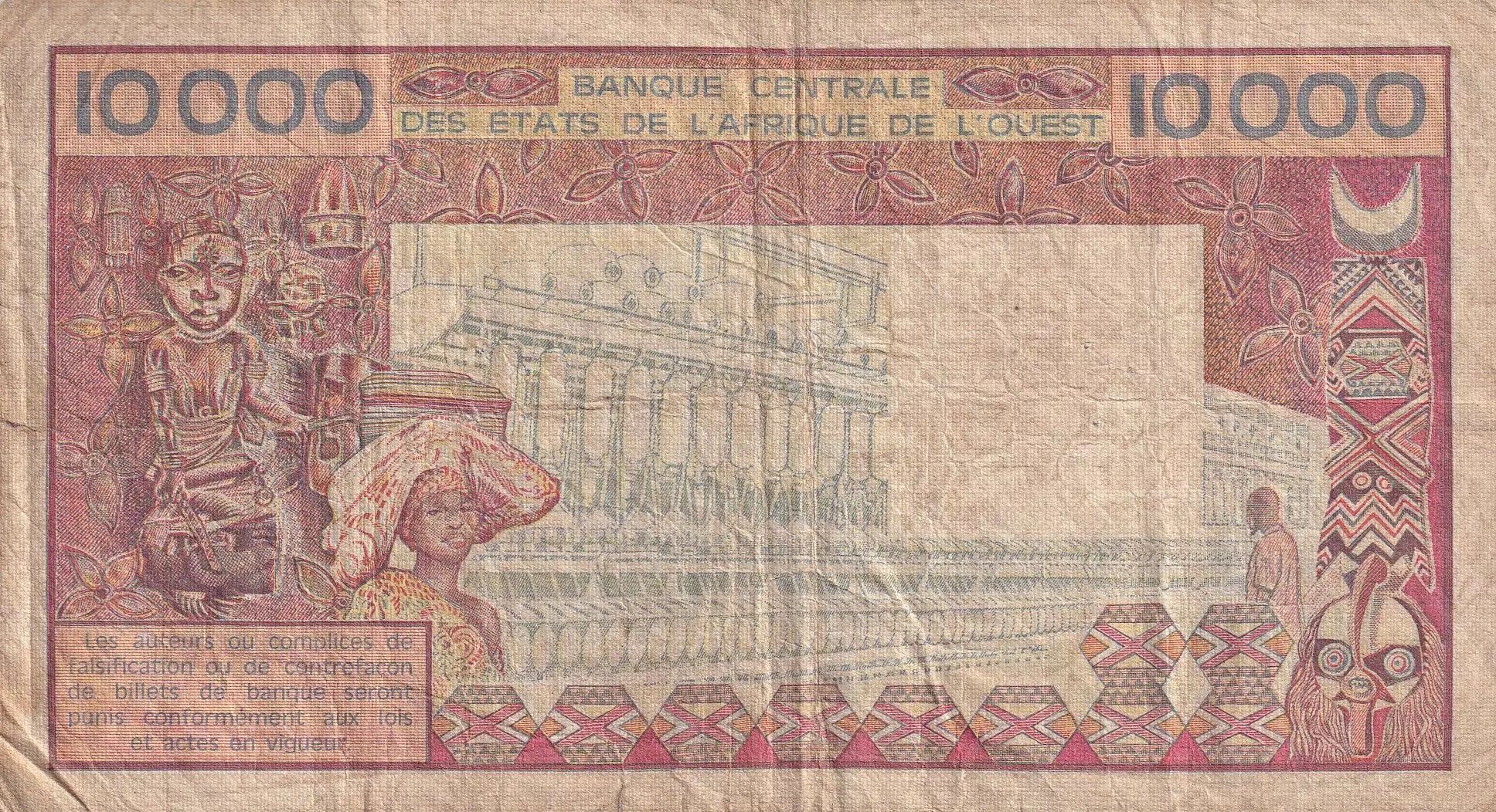 Banknote West AFrican States 10000 Francs - Spinning - ND (1989) - Serial B.043 - Letter A (Ivory Coast) - P.109Ai
